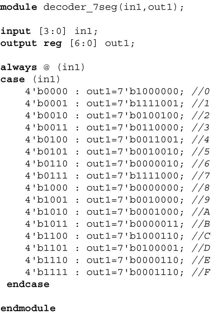 Verilog Description of the Seven-Segment Display Decoder Module code:4